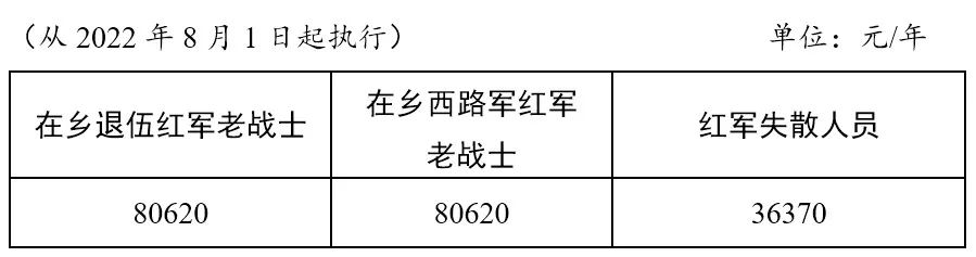 红军失散人员生活补助标准表