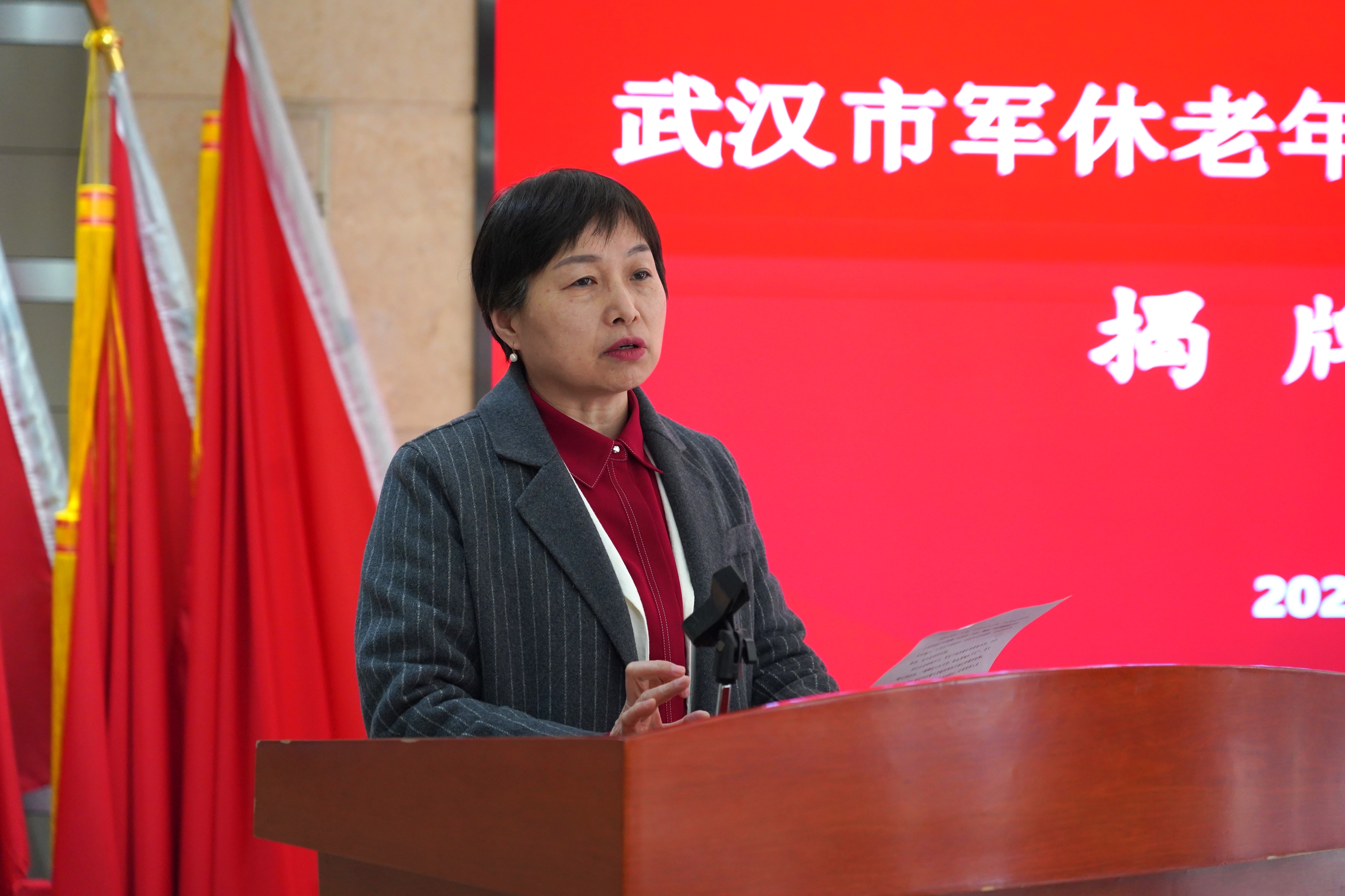 首先,中心党委书记、主任黄沙力为揭牌仪式致辞。她表示,军休干部是党和国家的宝贵财富,同样是社会主义物质文明、政治文明、精神文明建设的重要力量,服务好、保障好军休干部的晚年生活是党和政府赋予的历史使命。希望通过开办军休老年大学,让军休干部有一个“培养爱好、发挥特长、沟通交流、丰富生活”的平台,树立终身学习的理念,进一步提高军休干部文化素养、促进身心健康,竭力提升军休干部的生活质量。