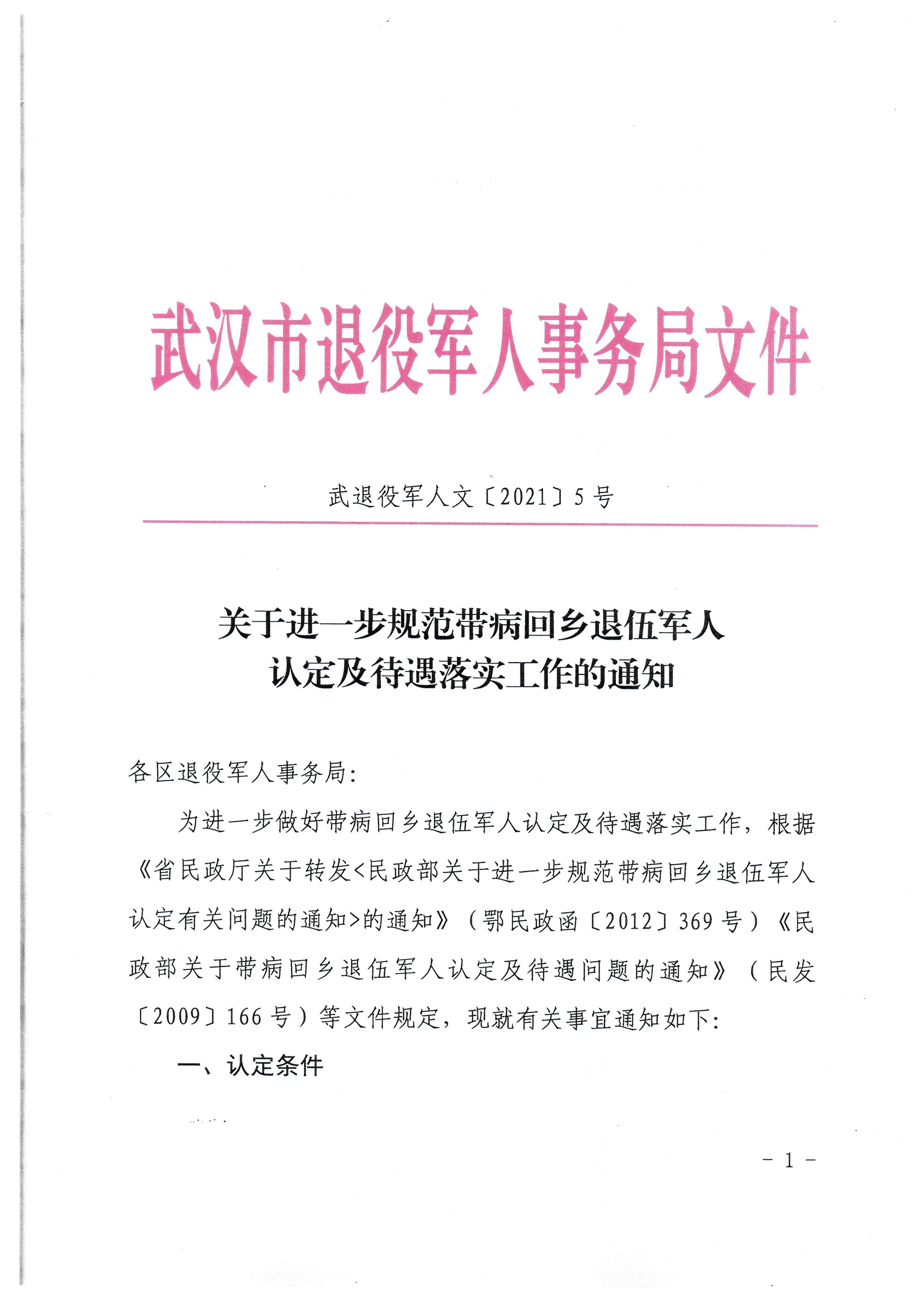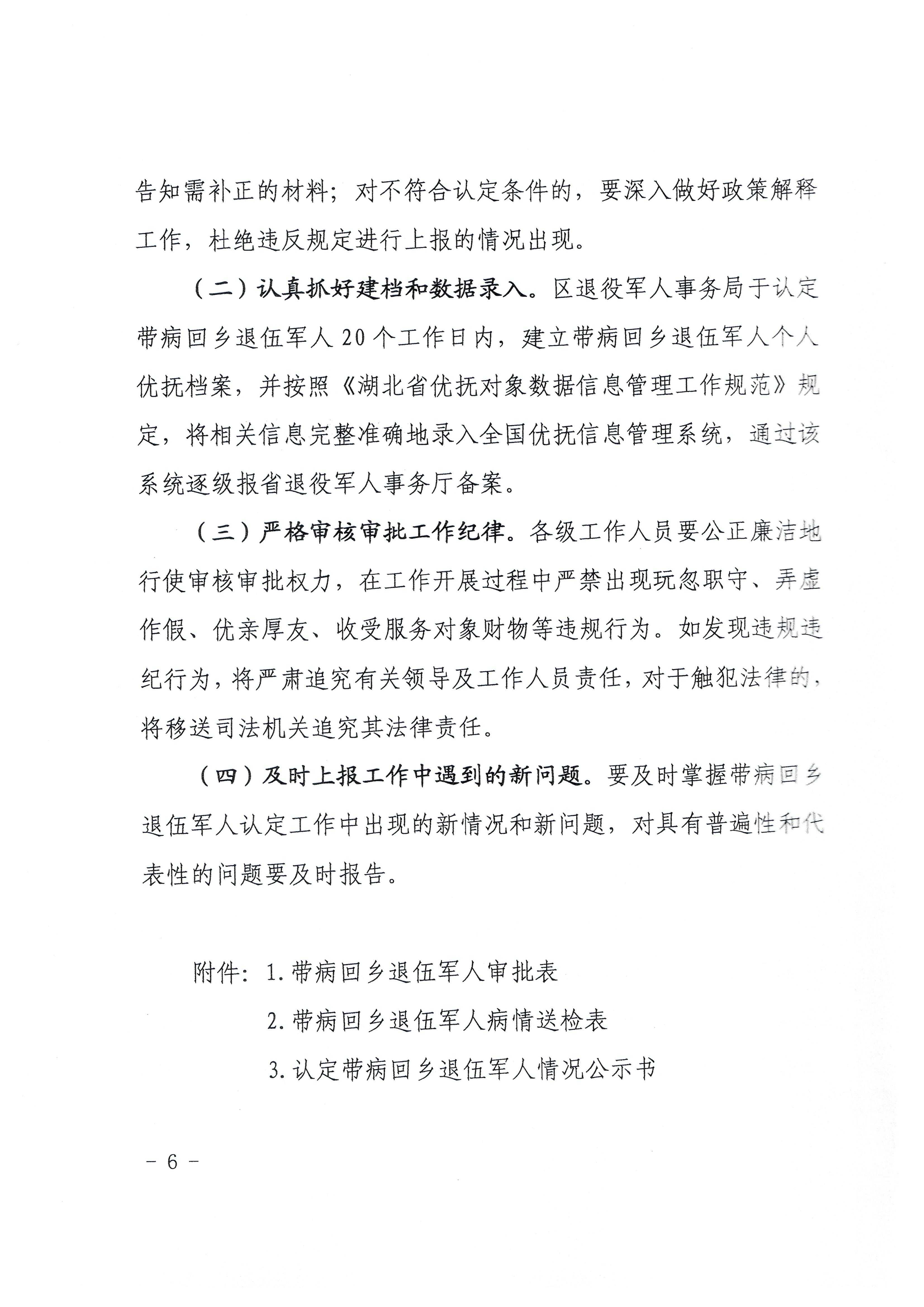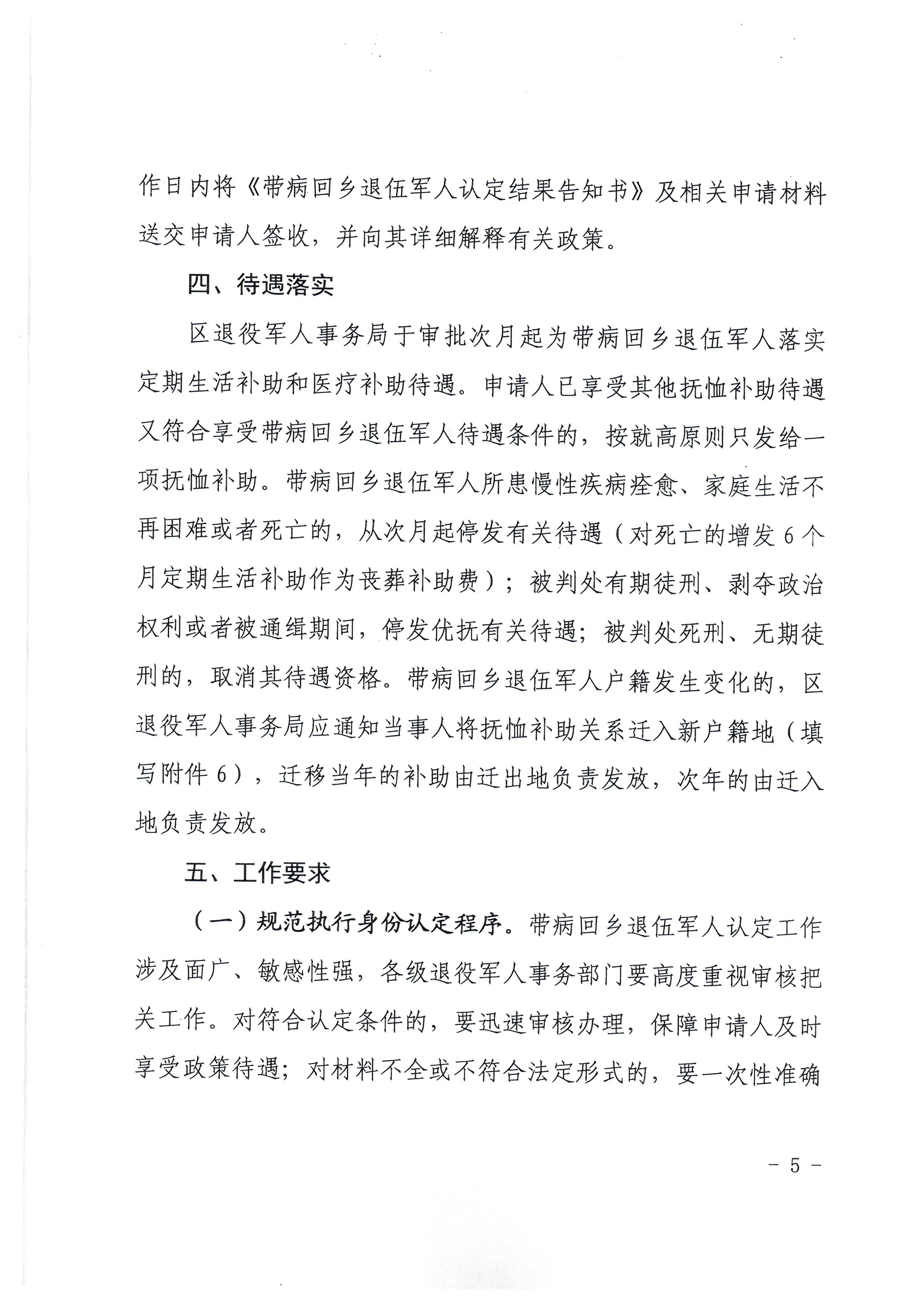 关于进一步规范带病回乡退伍军人认定及待遇落实工作的通知