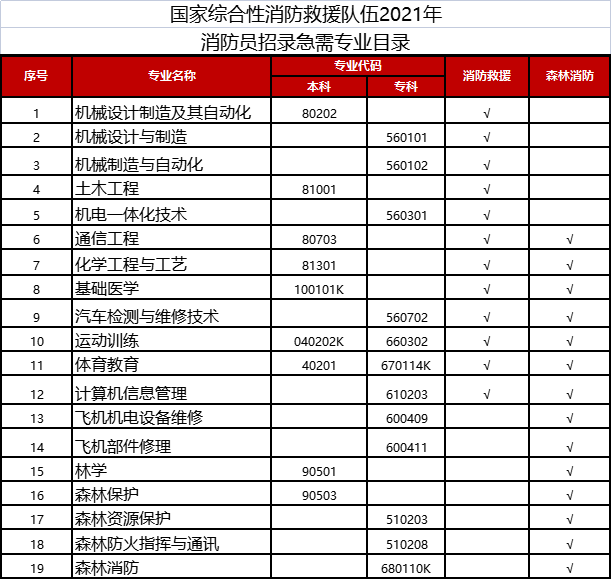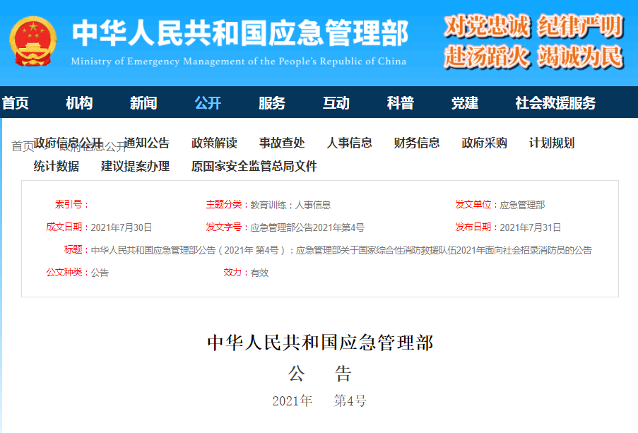近日,应急管理部发布关于国家综合性消防救援队伍2021年面向社会招录消防员的公告,共招录消防员10300名,其中,定向招录退役士兵3432名。